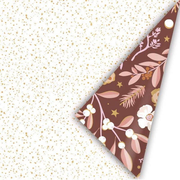 Cadeaupapier dubbelzijdig | 50 cm | Wit met sterretjes/gebloemd | 3 meter